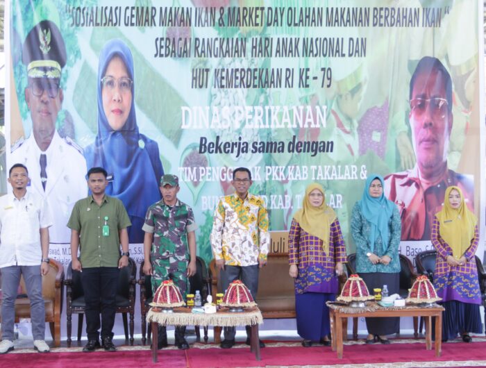 AKSESPUBLIK, Takalar– PJ Bupati Takalar Dr. Setiawan Aswad, M.Dev.,Plg, didampingi oleh PJ Ketua TP PKK dan selaku bunda paud Kabupaten Takalar, Sri Astuti Thamrin S. SI, M. Stat, Ph.D, membuka secara resmi kegiatan sosialisasi Gemar Makan Ikan dan Market Day Olahan Makanan Berbahan Ikan. Acara ini diselenggarakan untuk merayakan Hari Anak Nasional dan memperingati HUT ke-79 Republik Indonesia di Tribun Lapangan Makkatang Dg Sibali.