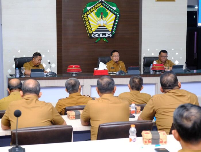 AKSESPUBLIK.COM, GOWA — Wakil Bupati Gowa, Darmawangsyah Muin memimpin langsung Rapat Evaluasi Program 100 Hari Kerja Bupati dan Wakil Bupati Gowa yang digelar di Baruga Pattingalloang, Kantor Bupati Gowa, Senin (19/5).