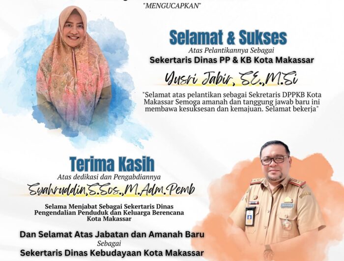 “Selamat dan Sukses Atas pelantikan sebagai Sekretaris DPPKB Kota Makassar, Ibu Yusri Jabir, S.E., M.Si. Semoga amanah dan tanggung jawab baru ini membawa kesuksesan dan kemajuan bagi organisasi dan masyarakat Kota Makassar,” demikian disampaikan oleh keluarga besar DPPKB Kota Makassar.