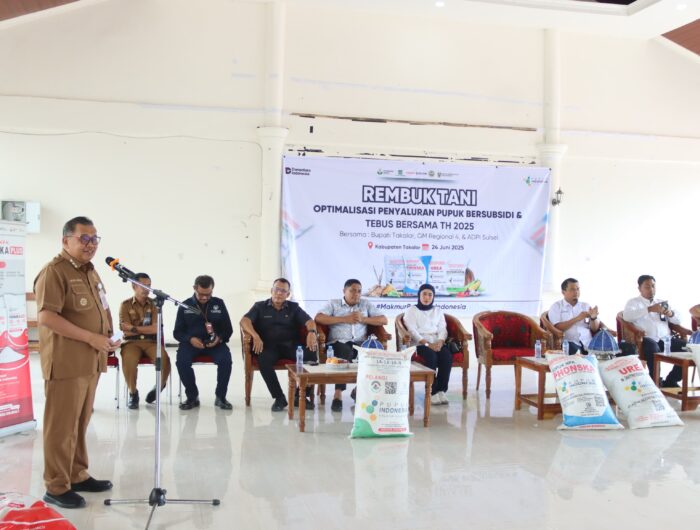 AKSESPUBLIK.COM, TAKALAR — Sebagai upaya pemerintah dalam mewujudkan swasembada pangan, Pemerintah Kab. Takalar melalui Kepala Dinas Tanaman Pangan, Holtikultura Perkebunan dan Ketahanan Pangan Kab. Takalar melaksanakan Sosialisasi Penyaluran Pupuk Bersubsidi dan Tebus Bersama Tahun 2025 yang dibuka secara resmi oleh Bupati Takalar Ir. H. Mohammad Firdaus Daeng Manye,.MM, Selasa (24/6/2025).